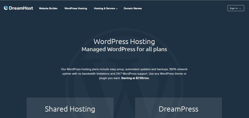 • Dreamhost is fully managed wordpress hosting provider and you can focus on your content and other website promotion activities