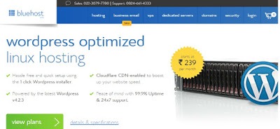 - The Bluehost wordpress hosting plan starts with Rs 279/-
