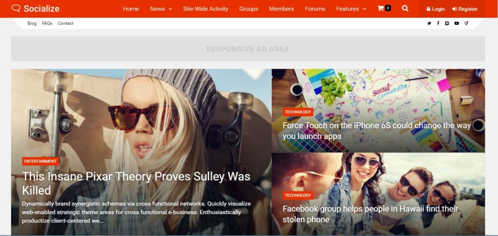 - It is Fully responsive and mobile friendly social network wordpress website