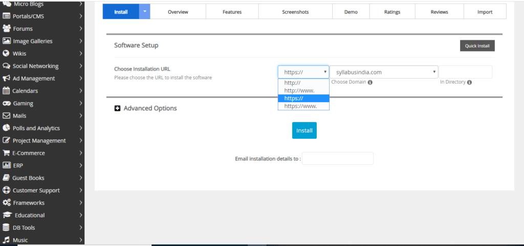 Softaculous is an auto-installer application and it can install any web application with a single click. The applications in the form of blogs, polls, forums, CMS, and web portals can be installed using Softaculous without any complications.